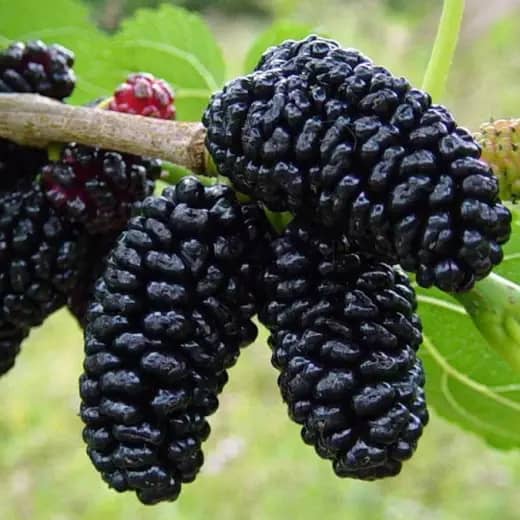 Дозрівання ягід припадає на початок-кінець липня. Особлива ця шовковиця довгими гілками, схиленими до землі. Плоди чорні,білі та рожеві в залежності від сорту дуже смачні, довжиною до 10 см.